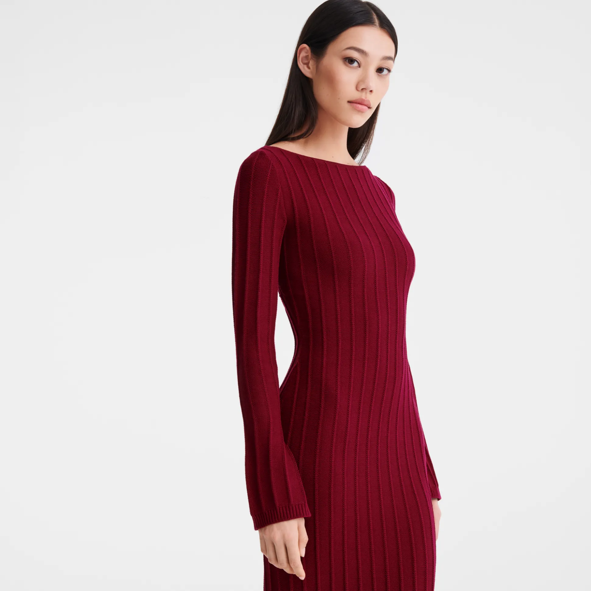 Grazie alla sua versatilità, questo abito lungo in maglia a coste piatte è adatto sia al giorno sia alla sera. Il tessuto comodo ed elastico avvolge il corpo, mentre l’ampia apertura sulla schiena offre un tocco sensuale e decisamente elegante. Questa stagione, la collezione prêt-à-porter della Maison sprigiona un’energia fresca e vitale che richiama uno spirito libero e senza limiti. Ogni creazione riflette ottimismo, con dettagli che evocano una raffinata eleganza rustica, per un fascino contemporaneo e senza tempo. La donna parigina si muove con disinvoltura tra i ritmi vivaci e dinamici della Ville Lumière e i placidi paesaggi di campagna, con un guardaroba che spazia tra audaci tocchi di rosa e creazioni con motivi e colori ispirati dalle tonalità naturali di un rigoglioso orto verdeggiante. Rivelando con eleganza le molteplici sfaccettatura di sé, la donna Longchamp si adatta ad ogni contesto senza mai perdere il proprio stile, distintivo e innato.
