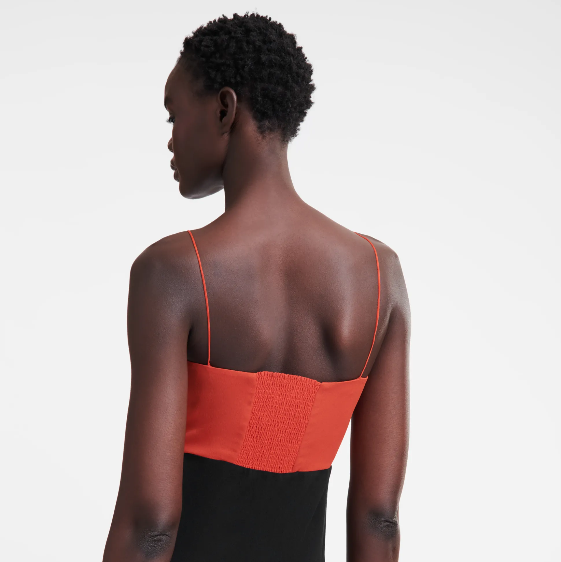 L’intramontabile abito Longchamp in crêpe de Chine offre una piacevole sensazione di leggerezza. Dotato di spalline sottili per dare spazio alle spalle, è caratterizzato da dettagli raffinati, come il carré posteriore a punto smock e gli intagli laterali per un tocco trendy. Questa collezione è un inno alla libertà, perché ti invitiamo a viaggiare e scoprire il meglio di te. La Parisienne è poliedrica, infonde eleganza nei look casual quotidiani e nell’abbigliamento sportivo, esprimendo audacia e femminilità attraverso materiali e motivi giocosi, texture morbide e colori vibranti.