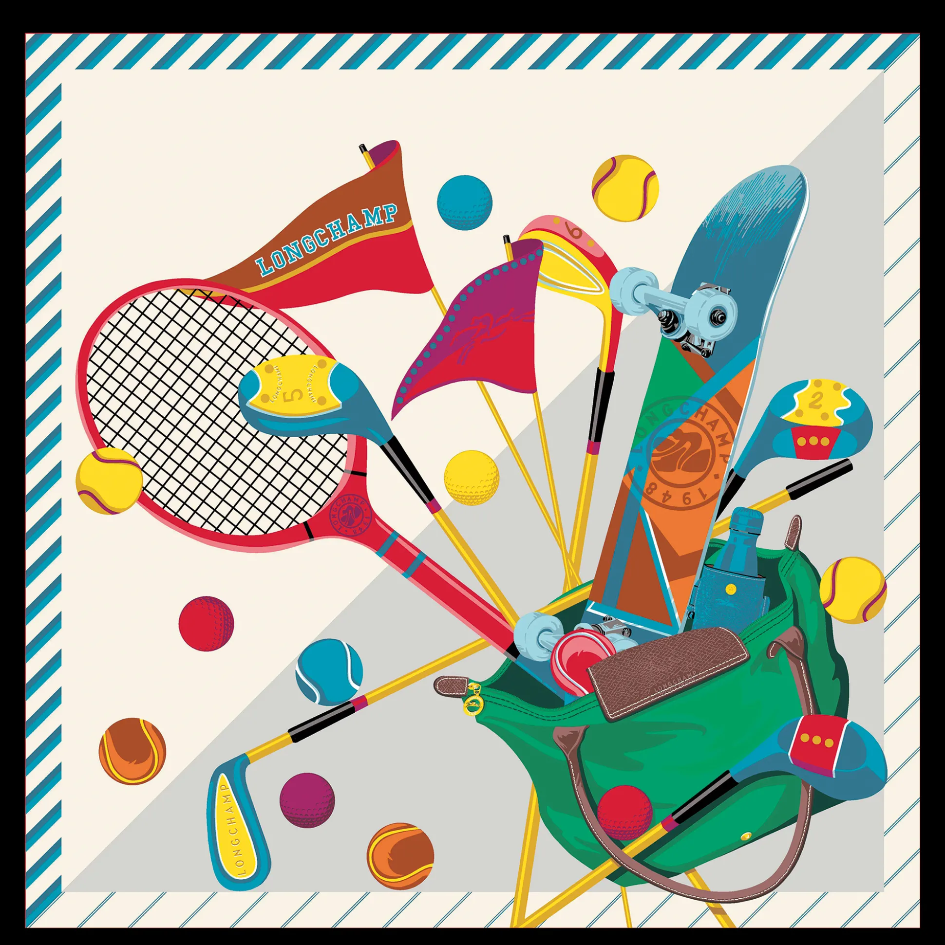 Come un borsa delle sorprese, Le Pliage lascia uscire una miriade di attrezzature dai colori esplosivi. Racchette, bandierine e palline adornano questo foulard grande in seta. La sua originalità dona un tocco fresco ed elegante a tutti i tuoi outfit. Esprimi la tua unicità con un foulard in seta Longchamp, in un formato grande, che permette un racconto più dettagliato. Estensione creativa della collezione prêt-à-porter, possiede un’identità personale tale da essere un’opera d’arte di per sé.