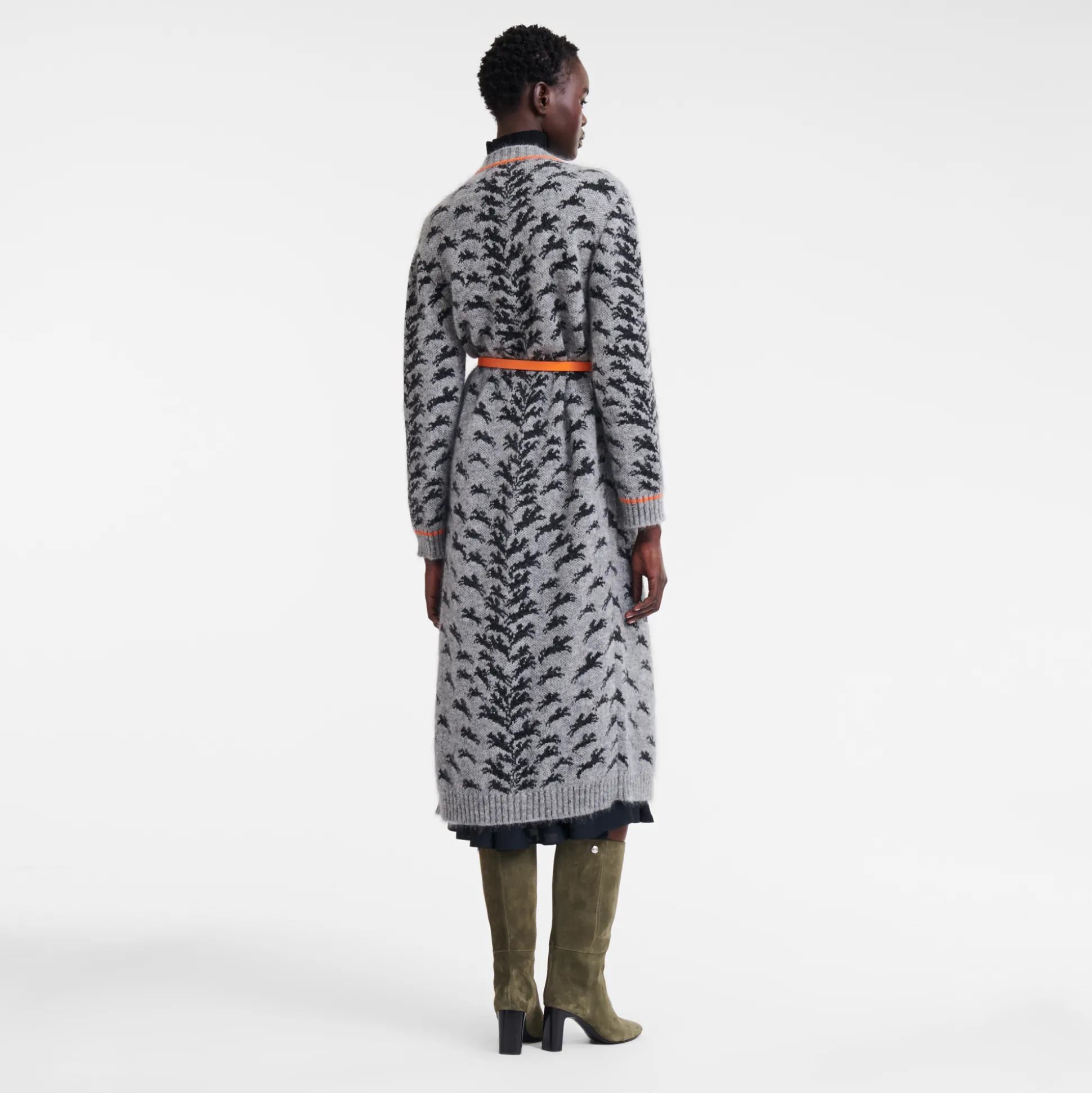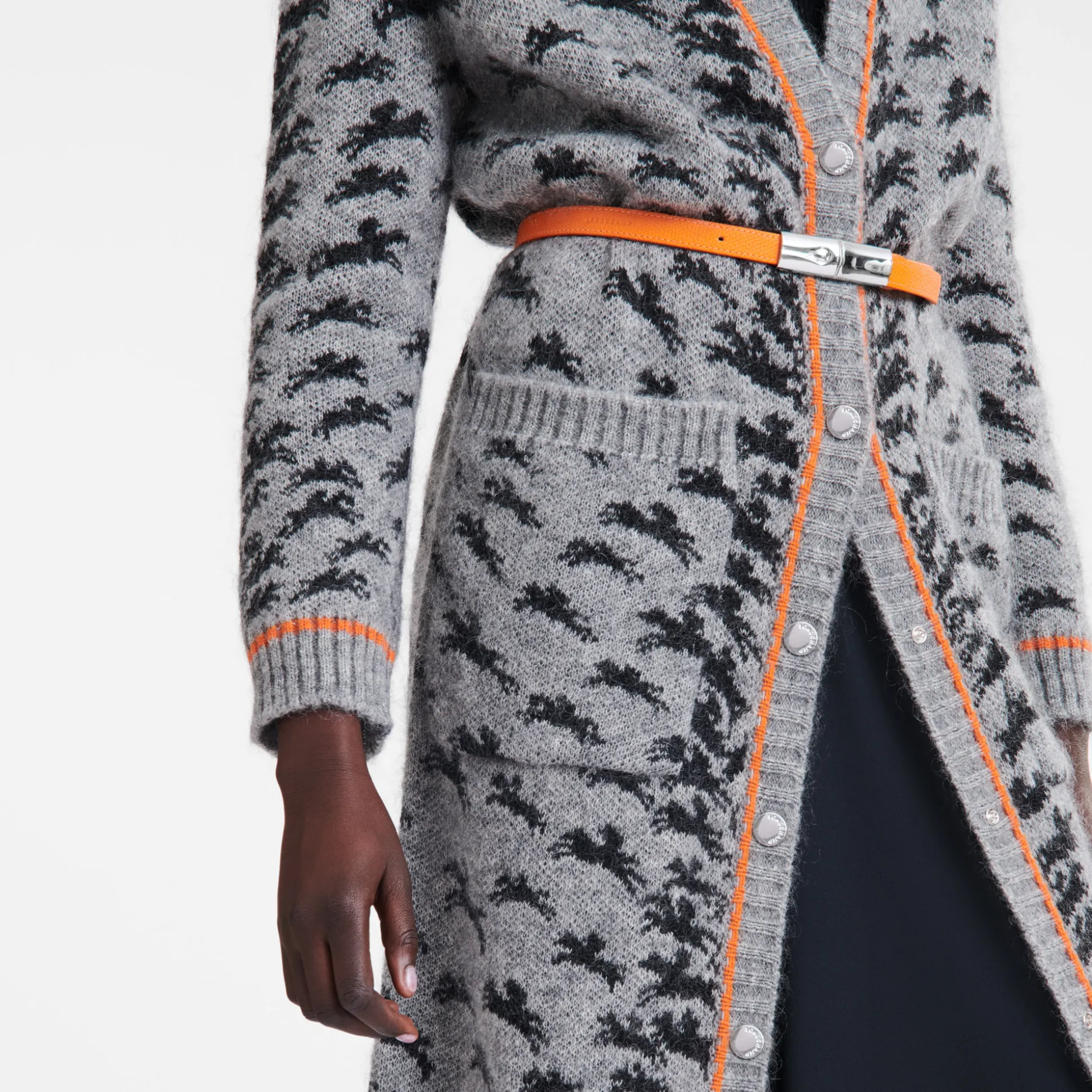 Questo cardigan Longchamp lungo in maglia di jacquard presenta la nostra caratteristica stampa del logo del cavallo, finiture a contrasto e un ampio scollo a V per un look trendy e casual allo stesso tempo. Facile da abbinare, puoi indossarlo aperto o chiuso con i tuoi capi invernali preferiti. Questa collezione è un inno alla libertà, perché ti invitiamo a viaggiare e scoprire il meglio di te. La Parisienne è poliedrica, infonde eleganza nei look casual quotidiani e nell’abbigliamento sportivo, esprimendo audacia e femminilità attraverso materiali e motivi giocosi, texture morbide e colori vibranti.