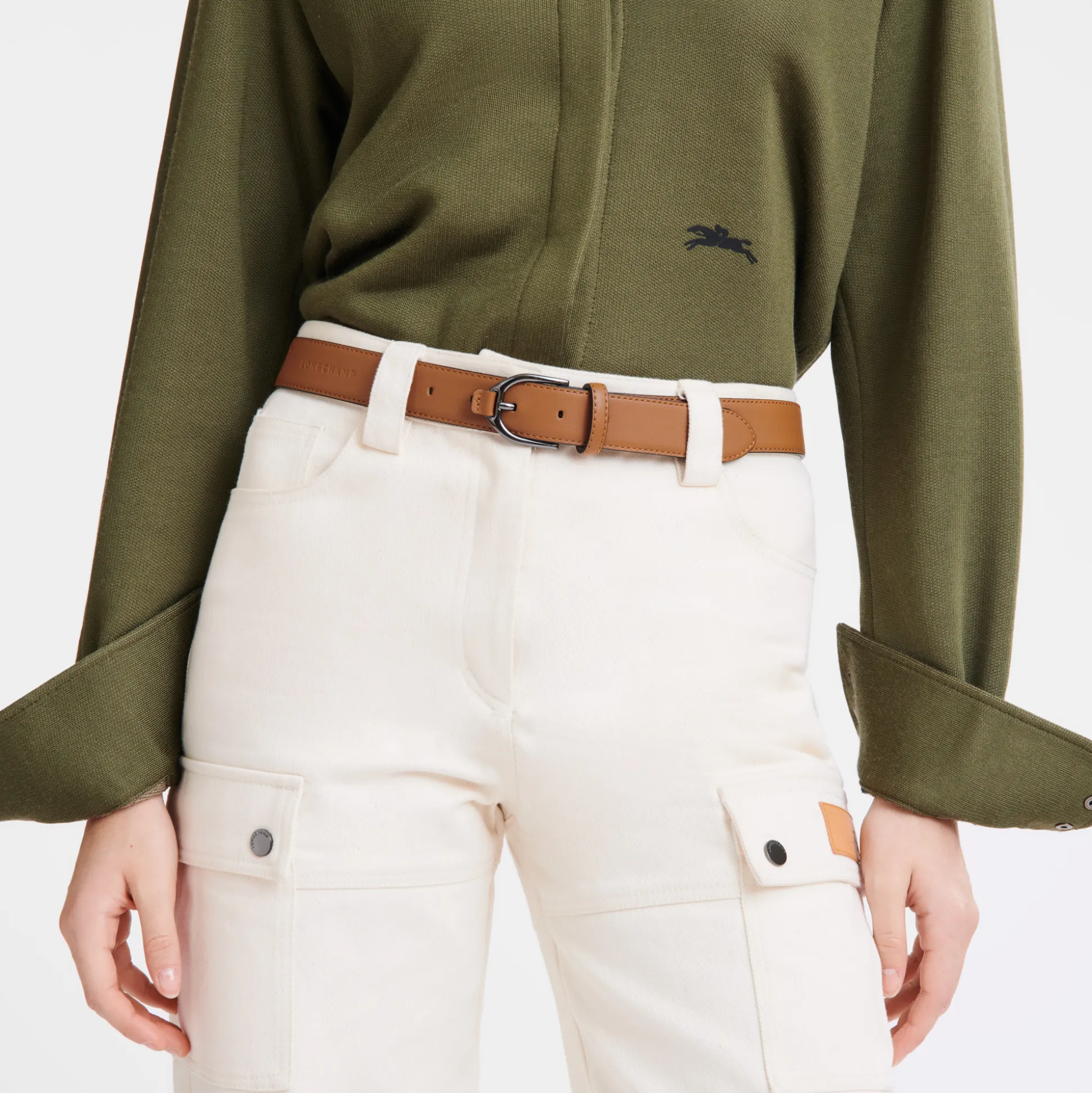 Questa cintura unisex, in pelle di vitello dalle dimensioni inclusive, esprime il suo carattere urbano grazie alla fibbia a staffa in argento scuro. Il logo Longchamp goffrato appare sul davanti di questa cintura per aggiungere un tocco di dimensionalità. La collezione LONGCHAMP 3D è al passo con i tempi grazie al suo carattere moderno e cosmopolita. È la compagna perfetta per una settimana attiva in città, ma è anche adatta a weekend sportivi e chic. La sua vocazione è quella di semplificare la vita quotidiana dell’uomo e della donna Longchamp attraverso uno spirito chic e vivace. Il logo goffrato sulla pelle rende ogni modello della linea perfettamente distinguibile. Il savoir-faire della Maison nella lavorazione della pelle trova espressione in modelli estremamente morbidi che resistono alla prova del tempo grazie alla solidità della pelle bovina. Le rifiniture a contrasto sottolineano i dettagli in rilievo e il dinamismo dei modelli. LONGCHAMP 3D è disponibile in colori vivaci ma sobri dallo spirito energico e autentico.