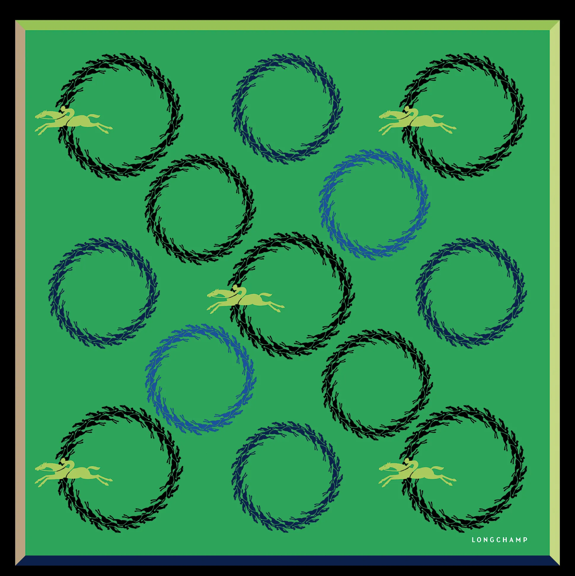 Questo foulard in seta ritrae il trionfante fantino Longchamp in una stampa vincente che ricopre tutta la superficie. Le ghirlande si dispongono simmetricamente su uno sfondo dalle tonalità senza tempo. Delicata e morbida, un foulard in seta Longchamp trasforma un semplice outfit in un look chic e composto. Da indossare intorno al collo, tra i capelli o legato ai manici della borsa, a seconda del tuo stile personale.