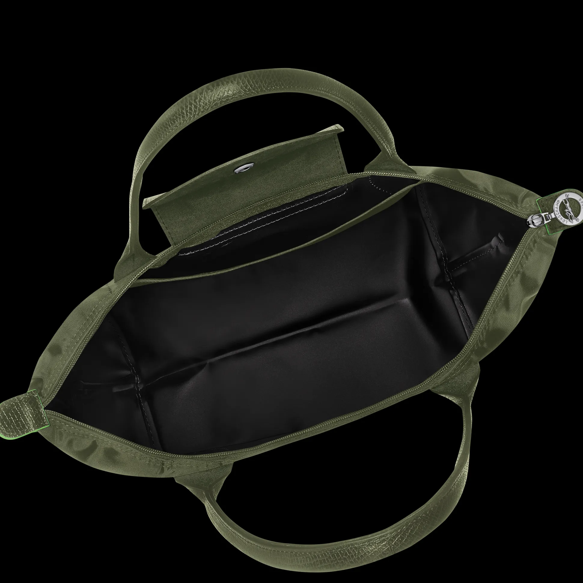 Questa tote ti conquisterà con le sue linee minimaliste e la forma compatta. I manici lunghi ti consentono di indossarla sulla spalla mentre la chiusura con cerniera custodisce tutte le tue cose in sicurezza. Per creare LE PLIAGE, borsa leggera e ripiegabile che è diventata oggetto di culto in tutto il mondo, Longchamp si è ispirato all’arte degli origami.nn La linea Pliage Green ha uno stile ecologico conferito dalla tela di poliammide riciclato. Offre una seconda e più nobile vita ai materiali usati (Certificazione GRS 4.0).nLa borsa adotta codici solidi, come il cavallo ricamato, e presenta rifiniture in cuoio di Russia tono su tono, caratteristiche di Longchamp. nIl dettaglio finale: un bordo verde sul manico, indicativo dell’uso eco-compatibile dei materiali, richiama il caratteristico colore verde brillante del marchio, simbolo di energia, freschezza e dinamismo! nUna linea socialmente responsabile per un look da tutti i giorni, nel pieno rispetto delle risorse naturali.