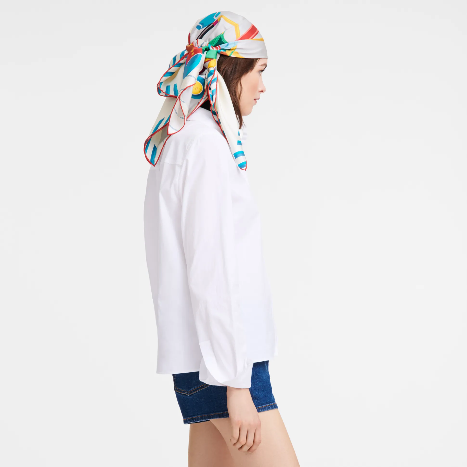 Come un borsa delle sorprese, Le Pliage lascia uscire una miriade di attrezzature dai colori esplosivi. Racchette, bandierine e palline adornano questo foulard grande in seta. La sua originalità dona un tocco fresco ed elegante a tutti i tuoi outfit. Esprimi la tua unicità con un foulard in seta Longchamp, in un formato grande, che permette un racconto più dettagliato. Estensione creativa della collezione prêt-à-porter, possiede un’identità personale tale da essere un’opera d’arte di per sé.