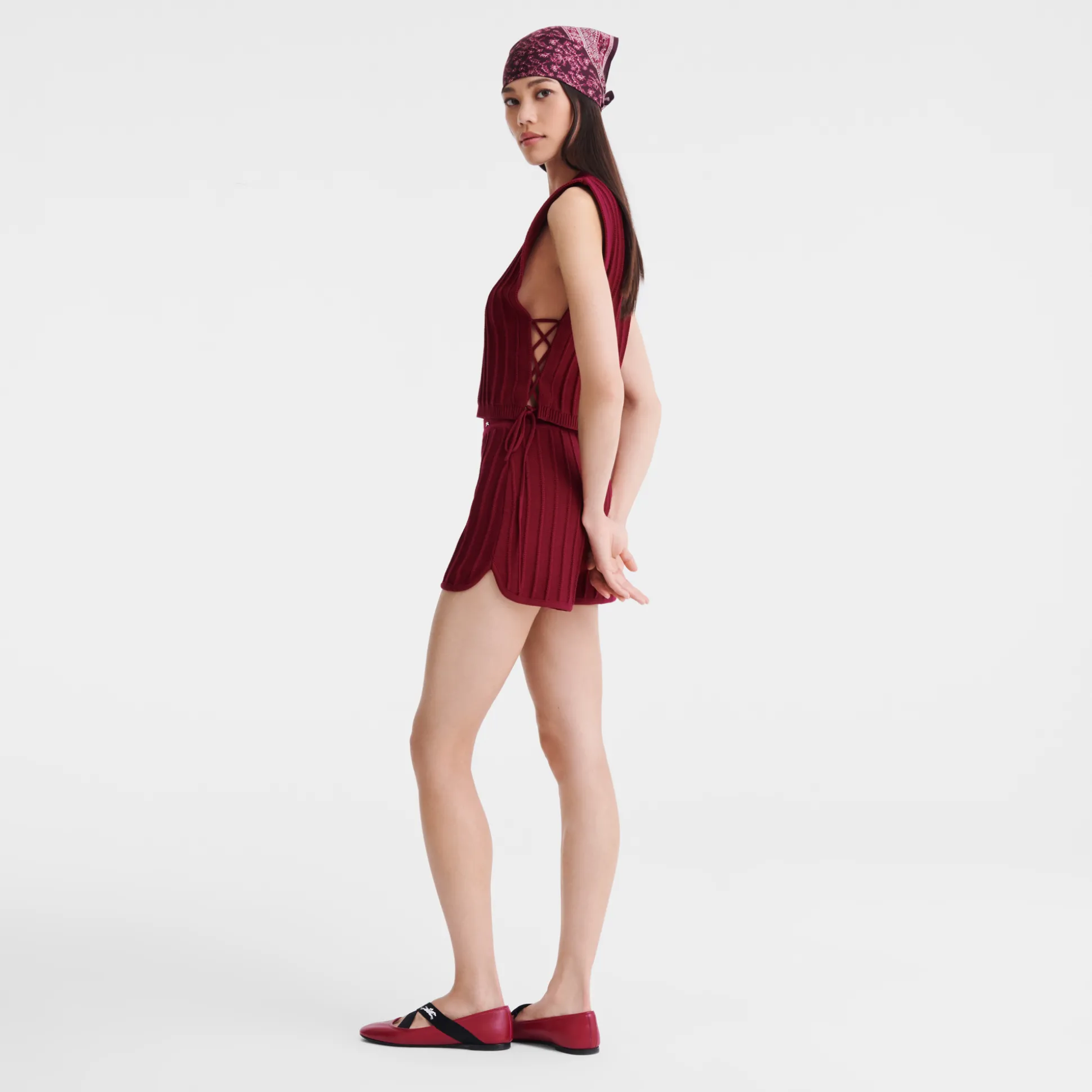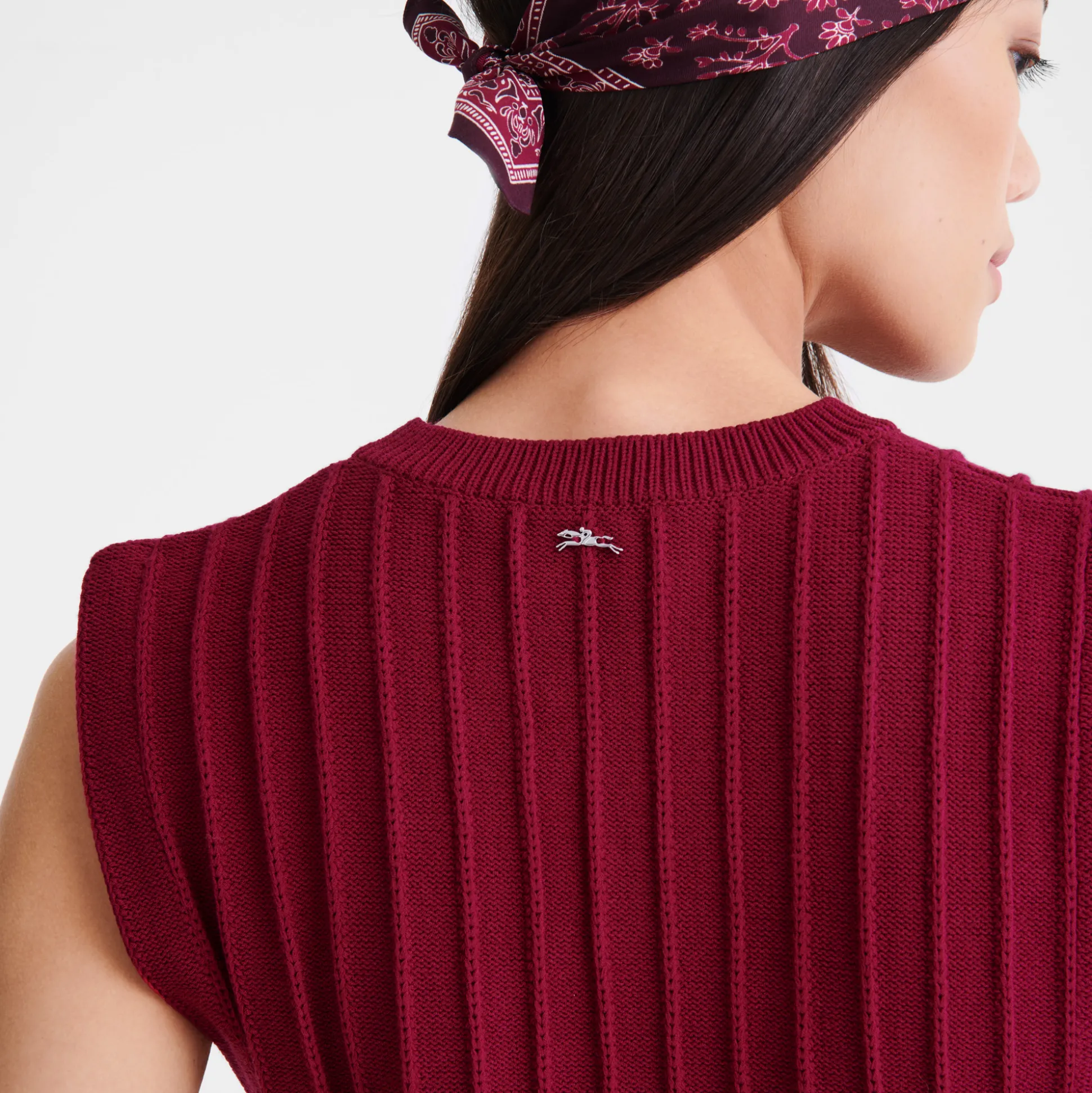 Questo top in rete è perfetto per chi è sempre in movimento e si abbina perfettamente agli shorts coordinati della stessa collezione. Caratterizzato da un motivo a coste larghe, uno scollo rotondo e coulisse regolabili sui lati, questo top elasticizzato e aderente offre sensualità e comfort. Indossalo direttamente a contatto con la pelle o sopra una camicetta o una maglietta. Questa stagione, la collezione prêt-à-porter della Maison sprigiona un’energia fresca e vitale che richiama uno spirito libero e senza limiti. Ogni creazione riflette ottimismo, con dettagli che evocano una raffinata eleganza rustica, per un fascino contemporaneo e senza tempo. La donna parigina si muove con disinvoltura tra i ritmi vivaci e dinamici della Ville Lumière e i placidi paesaggi di campagna, con un guardaroba che spazia tra audaci tocchi di rosa e creazioni con motivi e colori ispirati dalle tonalità naturali di un rigoglioso orto verdeggiante. Rivelando con eleganza le molteplici sfaccettatura di sé, la donna Longchamp si adatta ad ogni contesto senza mai perdere il proprio stile, distintivo e innato.
