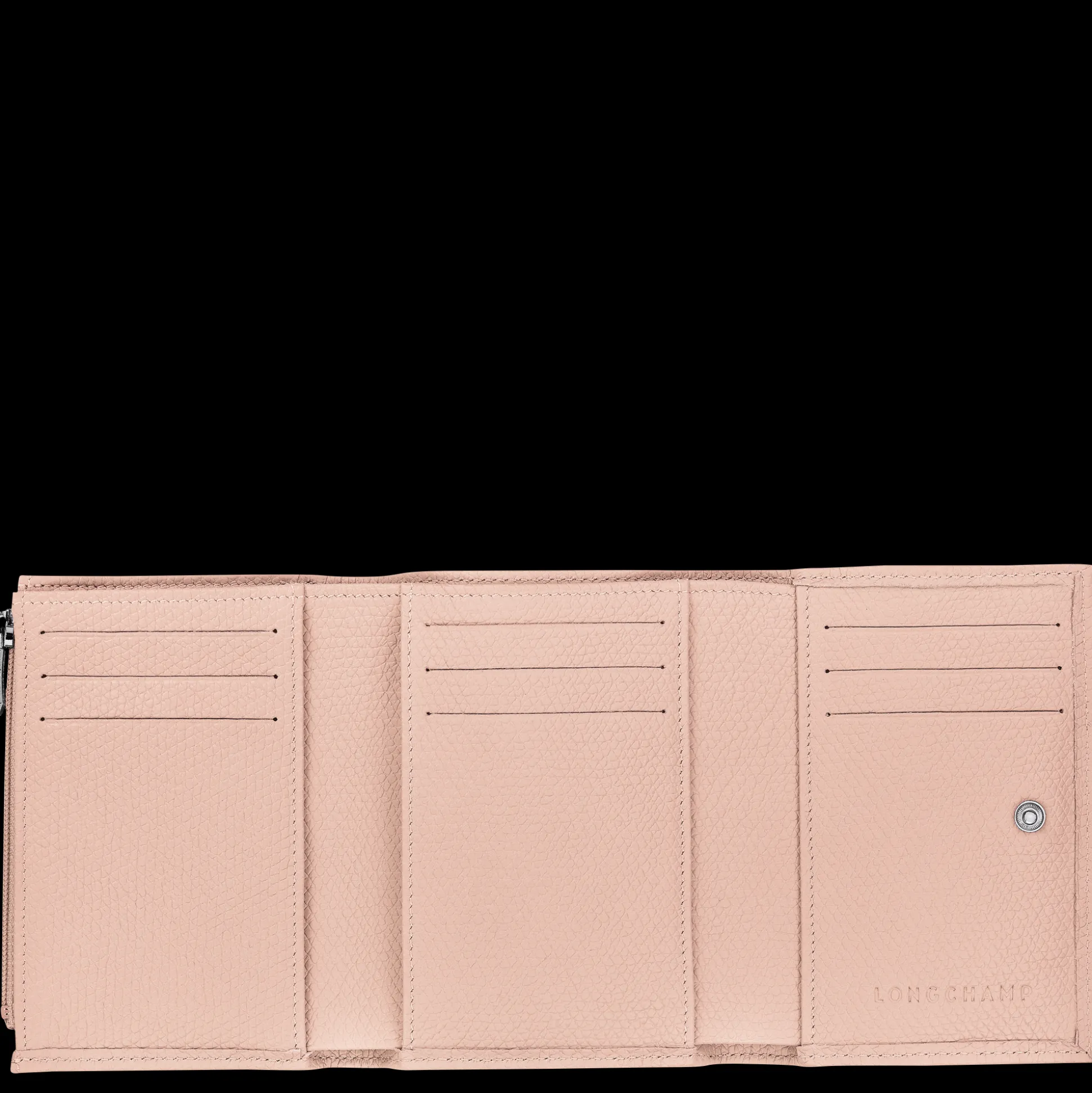 Questo portafoglio Longchamp extra piatto si adatta facilmente alla tua mano. L’apertura in tre parti si completa di n…